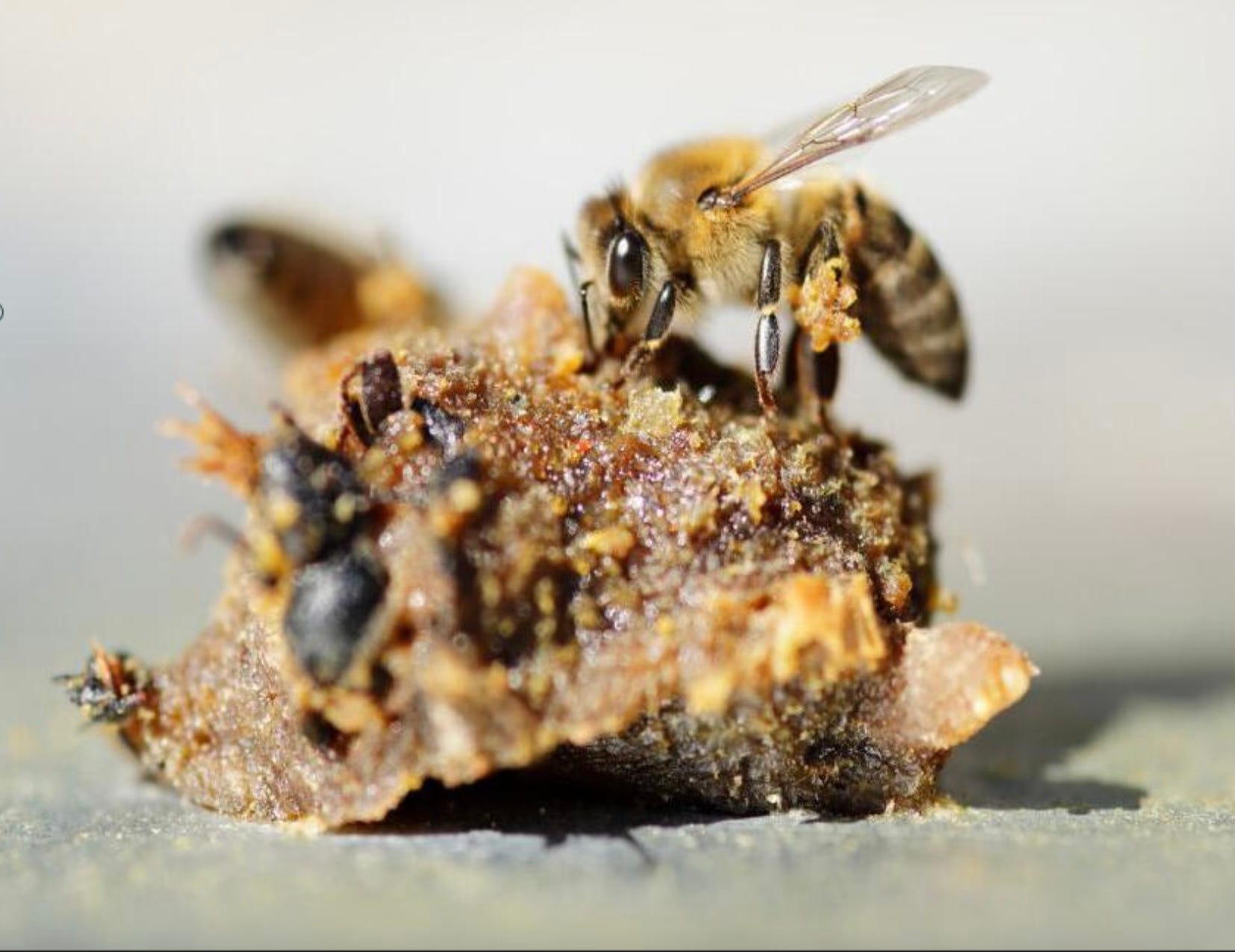 Since then, the practice of embalming parasites and pests, such as beetles and other small predators which bees find too difficult to remove from the hive once they have been killed by stinging them, has been observed many times. By covering these dead intruders with propolis, the bees prevent corpses from decomposing and presenting a health risk to the colony.